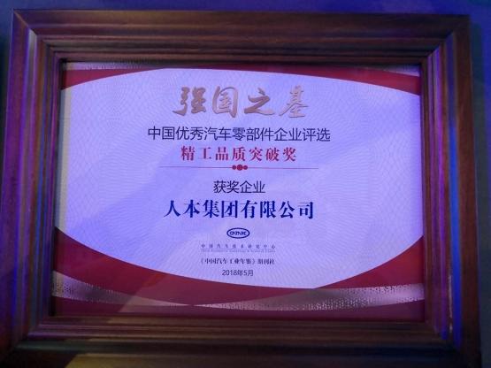 “他們秉承大國工匠精神,全力打造基礎(chǔ)部件與裝備的高端配套。精益求精、不懈創(chuàng)新、篤實專注,筑就精工。他們努力推進中國汽車制造的‘品質(zhì)革命’,用精工品質(zhì)托起冉冉上升的汽車強國夢。”這是5月31日在西安舉行的“強國之基—中國優(yōu)秀汽車零部件企業(yè)”頒獎典禮上,組委會給人本集團頒發(fā)“強國之基——精工品質(zhì)突破獎”時,賦予的“頒獎詞”。