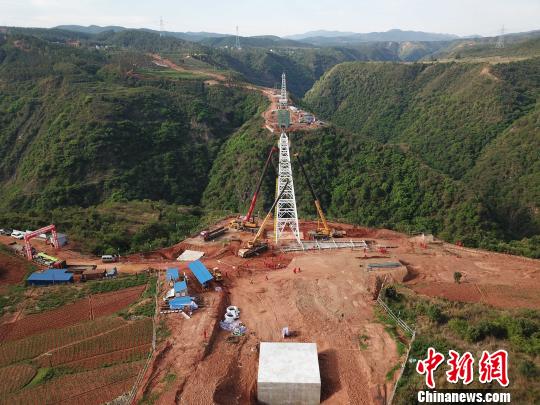 勐崗河懸索跨越北岸塔架吊裝作業(yè)現(xiàn)場(chǎng)。華昱翔攝