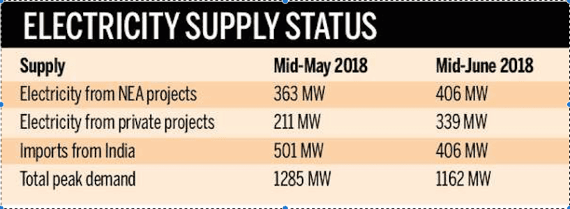 國有電力公司稱,進(jìn)口減少了20%。尼泊爾在高峰時(shí)間從印度進(jìn)口了500兆瓦的電力。