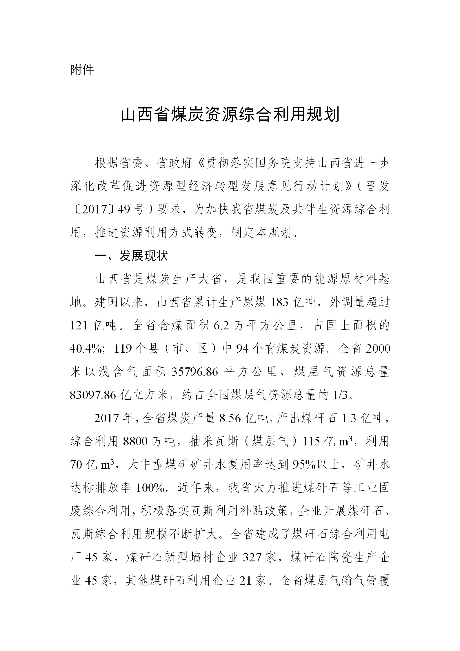 山西省經濟和信息化委員會關于印發山西省煤炭資源綜合利用規劃通知晉經信資源字〔2018〕151號