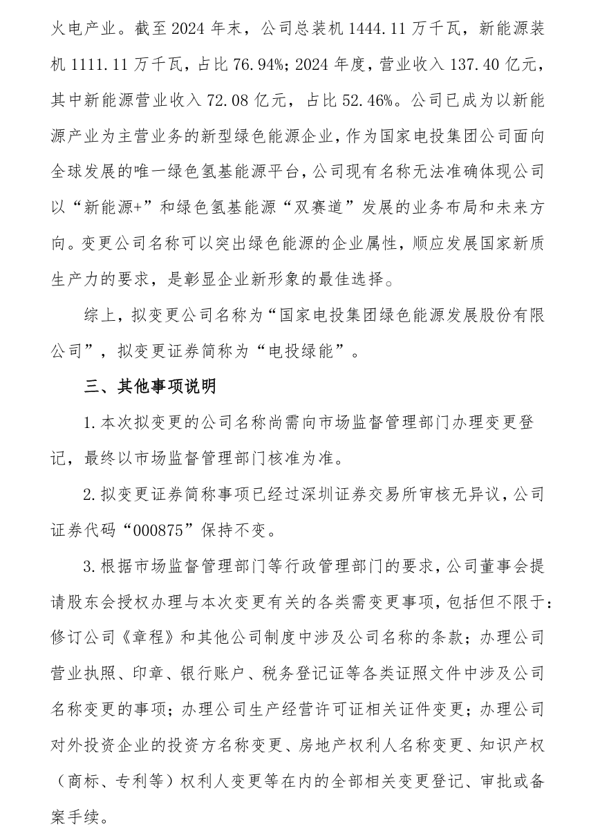 吉電股份發(fā)布公告稱,公司于8月20日召開第九屆董事會(huì)第三十四次會(huì)議,審議通過了《關(guān)于變更公司名稱及證券簡(jiǎn)稱的議案》,擬變更公司名稱為國(guó)家電投集團(tuán)綠色能源發(fā)展股份有限公司,擬變更證券簡(jiǎn)稱為電投綠能。
