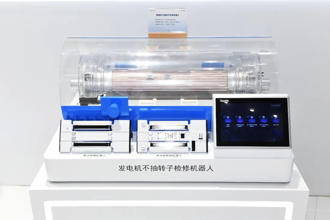 展會(huì)上,明星裝備“悟空”機(jī)器人家族圈粉無(wú)數(shù),8臺(tái)功能機(jī)器人無(wú)需抽出233噸重的發(fā)電機(jī)轉(zhuǎn)子,就能深入定轉(zhuǎn)子間隙做“精密體檢”,捕捉發(fā)絲級(jí)定子松動(dòng)缺陷,30分鐘內(nèi)完成修復(fù),目前已覆蓋主流發(fā)電機(jī)機(jī)型,讓核電檢修邁入智能化新階段。