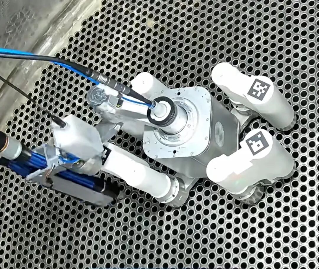 它是全球首臺(tái)能查蒸發(fā)器傳熱管的四足機(jī)器人,靠獨(dú)特的四足錨爪結(jié)構(gòu),像登山者的冰爪一樣抓著傳熱管,能變姿態(tài)快速爬行,一邊爬一邊檢測(cè),能同步完成爬行和檢測(cè),效率提升3倍,還能進(jìn)到人夠不著的狹窄區(qū)域,確保傳熱管“無(wú)死角檢查”。