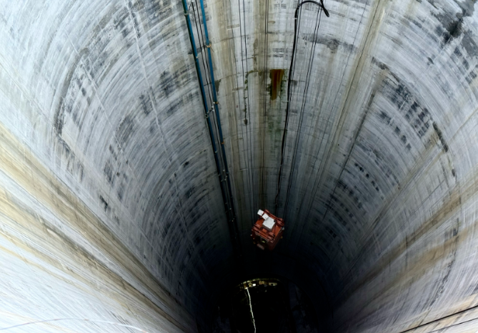該工程應用了國內首臺全斷面擴孔式超深豎井掘進機等創新裝備,采用新型工法施工。施工數據顯示,豎井導井最大偏斜率、擴井后井徑最大偏差等關鍵指標優于行業標準,并在日掘進進尺、月掘進進尺及整體工期等方面創造了行業紀錄。