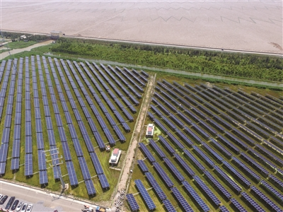 4500畝灘涂鹽堿地成灘涂農(nóng)光互補(bǔ)光伏發(fā)電基地。 胡志欽 攝