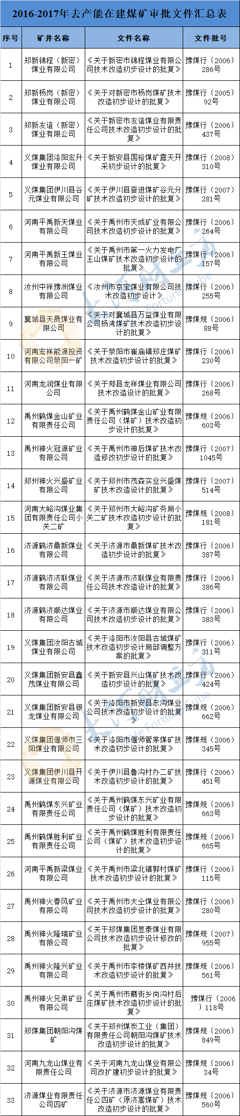 附:2016-2017年去產(chǎn)能在建煤礦審批文件匯總表