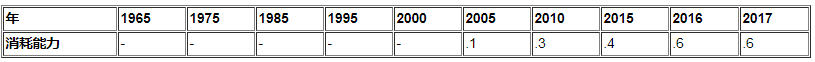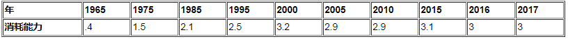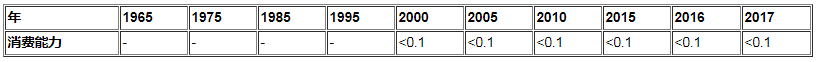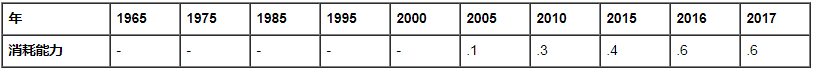 表16:Mtoe自1965年以來的埃及可再生能源消耗[10]