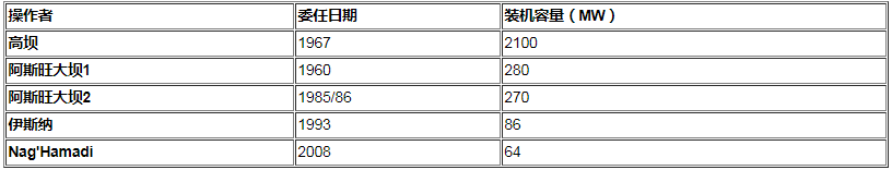 表19:埃及的水力發電廠