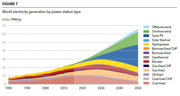 特別是可再生能源和太陽能光伏發電的增長將對化石燃料工業造成不利影響。DNV GL表示,從現在到2050年,全球電力需求將增長2.5倍,而煤炭和燃氣發電將減少60%。
