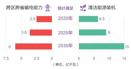 預(yù)計(jì)到2020年、2025年和2035年,國(guó)家電網(wǎng)跨區(qū)跨省輸電能力將分別達(dá)到2.5億、3.6億和6億千瓦,滿足清潔能源裝機(jī)6.5億、9億和15億千瓦發(fā)展需要。