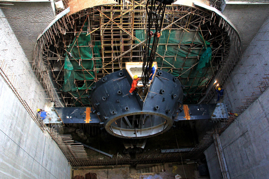 中鐵二十局建設者吊裝發電機組管型座內環