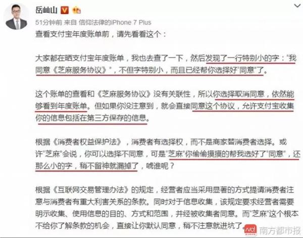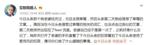阿里系這邊,旗下子公司支付寶被爆出在“年度賬單”活動中,靠默認(rèn)勾選套取用戶數(shù)據(jù);騰訊系也不消停,先是吉利控股董事長李書福公開質(zhì)疑微信偷看用戶聊天記錄,幾天后騰訊和廣州市政度試推出的全國首張“微信身份證”又被指責(zé)“動機(jī)不純”;撇開這兩家,號稱中國最大的內(nèi)容平臺的今日頭條,被質(zhì)疑利用手機(jī)麥克風(fēng)獲取用戶數(shù)據(jù)隱私……