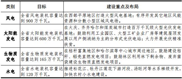3.積極發(fā)展可再生能源風(fēng)電。風(fēng)力發(fā)電重點(diǎn)布局向我省西部地區(qū)轉(zhuǎn)移,利用西部地區(qū)鹽堿地、沙化地等未利用地豐富優(yōu)勢(shì)和電力消納能力較強(qiáng)優(yōu)勢(shì),優(yōu)先開發(fā)、集中打造大型風(fēng)電基地。在加強(qiáng)生態(tài)保護(hù)前提下,有序開發(fā)東部等其他地區(qū)風(fēng)力資源。因地制宜提高風(fēng)能利用效率,積極開展分散式風(fēng)電試點(diǎn)示范。到2020年,全省風(fēng)電裝機(jī)容量達(dá)到900萬千瓦。太陽(yáng)能發(fā)電。大型太陽(yáng)能電站重點(diǎn)布局在我省中西部鹽堿地等未利用土地和東部四煤城采煤沉陷區(qū),集中打造齊齊哈爾、大慶、綏化和東部四煤城大型光伏發(fā)電基地;大力推進(jìn)光伏精準(zhǔn)扶貧,在重點(diǎn)貧困地區(qū)推進(jìn)建設(shè)一批村級(jí)光伏扶貧電站;鼓勵(lì)利用大型公共建筑及公用設(shè)施、工業(yè)園區(qū)等屋頂建設(shè)分布式光伏發(fā)電。到2020年,全省太陽(yáng)能發(fā)電容量達(dá)到600萬千瓦。生物質(zhì)能發(fā)電。統(tǒng)籌規(guī)劃、合理布局生物質(zhì)發(fā)電項(xiàng)目。在哈爾濱、齊齊哈爾、佳木斯、大慶等中心城市周邊地區(qū),雞西、雙鴨山、鶴崗、綏化、撫遠(yuǎn)及農(nóng)墾等糧食主產(chǎn)區(qū),規(guī)劃布局一批以秸稈和糧食加工剩余物為原料的生物質(zhì)直燃發(fā)電項(xiàng)目;在牡丹江、黑河、伊春等林區(qū),建設(shè)一批以林下剩余物、廢棄菌袋等為主的生物質(zhì)直燃發(fā)電項(xiàng)目。加快燃煤與生物質(zhì)耦合發(fā)電關(guān)鍵技術(shù)研發(fā),選擇有條件的燃煤電廠進(jìn)行秸稈摻燒改造試點(diǎn),降低電廠煤耗,減少生物質(zhì)直接焚燒污染。開展生物質(zhì)氣化發(fā)電、沼氣發(fā)電試點(diǎn)示范。到2020年,全省生物質(zhì)發(fā)電裝機(jī)容量達(dá)到165萬千瓦,年消耗各類生物質(zhì)資源1300萬噸。水電。在做好生態(tài)環(huán)境保護(hù)和移民安置的前提下,以內(nèi)河資源為主,按照流域規(guī)劃,兼顧經(jīng)濟(jì)和社會(huì)效益,堅(jiān)持梯級(jí)、有序、滾動(dòng)開發(fā),重點(diǎn)加快牡丹江干流蓮花水電站以下江段、湯旺河干流、海浪河干流等流域水電開發(fā)建設(shè)。加快推進(jìn)荒溝抽水蓄能電站建設(shè),開工建設(shè)尚志、五常抽水蓄能電站,完成依蘭抽水蓄能電站前期工作,提前開展其它優(yōu)質(zhì)站址資源的前期工作。到2020年,全省常規(guī)水電裝機(jī)達(dá)到120萬千瓦。