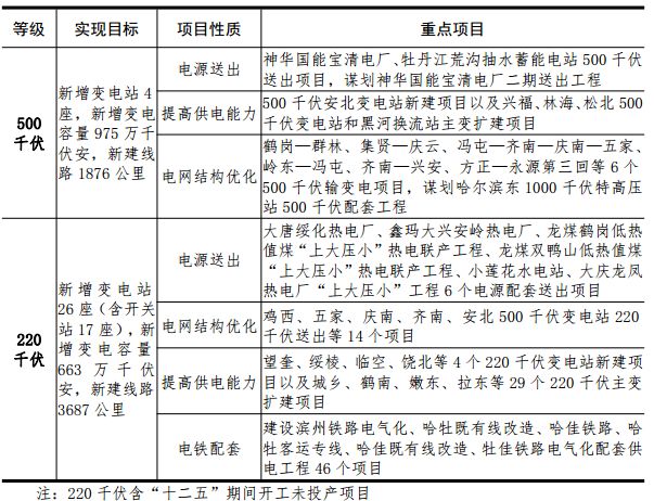 6.建設(shè)堅(jiān)強(qiáng)智能電網(wǎng)。建成齊南至興安500千伏向扎魯特匯集電力通道,謀劃以哈爾濱為起點(diǎn)的特高壓外送通道。構(gòu)建以中西部負(fù)荷為中心的東、西部500千伏電網(wǎng)環(huán)網(wǎng)結(jié)構(gòu)。繼續(xù)優(yōu)化220千伏電網(wǎng)結(jié)構(gòu),除大興安嶺和伊春地區(qū),其他11個(gè)地區(qū)均將形成以1座或多座500千伏變電站為中心的220千伏網(wǎng)架,滿足負(fù)荷增長(zhǎng)和電源送出需求。加快城市配電網(wǎng)建設(shè)改造,提高供電可靠性。加大農(nóng)網(wǎng)改造升級(jí)力度,著力滿足農(nóng)村生產(chǎn)生活日益增長(zhǎng)的用電需求,提升供電質(zhì)量。適應(yīng)新能源、分布式電源和多元化負(fù)荷發(fā)展需要,提高電網(wǎng)智能化水平,提升能源利用率。推進(jìn)分布式能源網(wǎng)絡(luò)、新能源微電網(wǎng)建設(shè)。在具備條件的地區(qū),推動(dòng)建設(shè)以用戶端自發(fā)自用為主的分布式能源網(wǎng)絡(luò)。在哈爾濱及其他新能源汽車應(yīng)用城市,建設(shè)充換電站、天然氣加注站及配套服務(wù)系統(tǒng)。