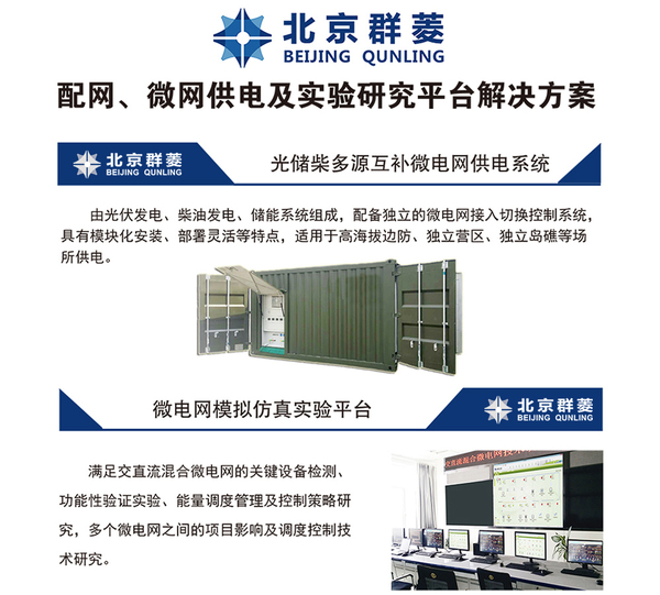 北京群菱能源科技有限公司專業(yè)致力于新能源檢測及系統(tǒng)集成、電動(dòng)汽車充電站檢測及系統(tǒng)集成、電源測試設(shè)備研發(fā)與制造的高科技生產(chǎn)型企業(yè)。針對(duì)微電網(wǎng)實(shí)驗(yàn)研究領(lǐng)域的難題,推出配網(wǎng)、微電網(wǎng)供電及實(shí)驗(yàn)研究平臺(tái)解決方案。