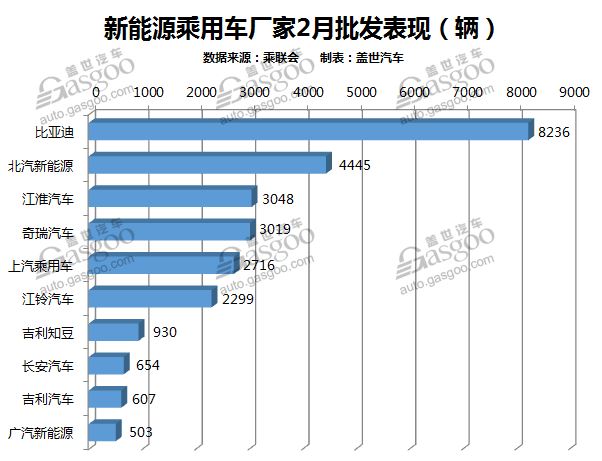 在2月新能源乘用車銷量表現中,江淮和奇瑞的銷量排名都有上升。其中江淮汽車銷售3048輛,同比增長2338%,在2月銷量排行榜中位列第三,較1月上升一個名次。