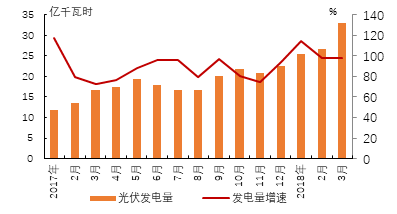 2018年3月,印度光伏發(fā)電量為33.1億千瓦時(shí),同比增長98.2%,保持了高速增長。一季度,印度光伏發(fā)電量85.4億千瓦時(shí),同比增長102.8%。