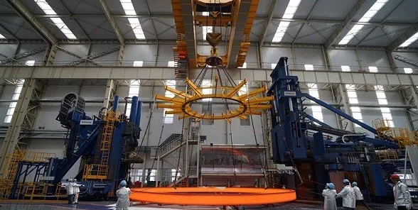 2018年5月30日上午10點18分,山東伊萊特重工股份有限公司(以下簡稱伊萊特)在濟南章丘隆重舉行“大鍛件項目暨全球首臺超級軋環機投產儀式”,這次下線的全球最大軋環,直徑16米,重126噸,打破了原世界最大鍛環直徑10米的紀錄,將我國環類、筒類鍛件的制造能力一舉提高到世界領先水平。