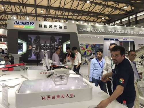 風光運維無人機與光伏無水清潔機器人,吸引了眾多目光,就連外國客戶也對它們好奇不已。